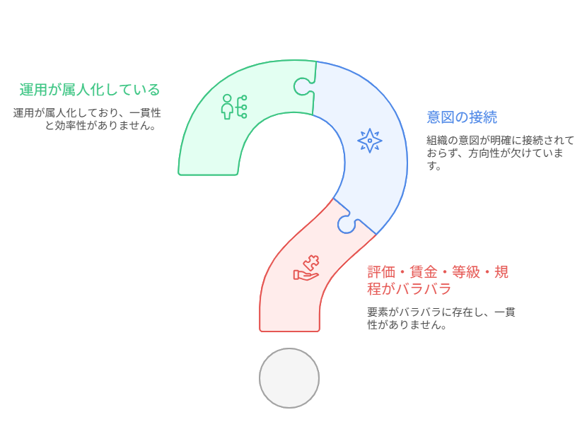 評価・賃金・等級・規程がバラバラに存在している意図が接続されていない運用が属人化している