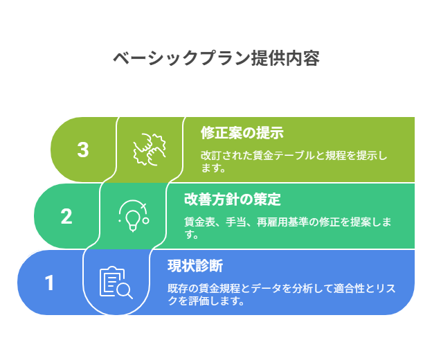 - 実際の支給データのサンプリング分析(賃金テーブル・各種手当の支給状況)