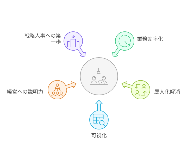 - 戦略人事への第一歩:次のフェーズ(KPI設定・戦略連動)に移行しやすくなる