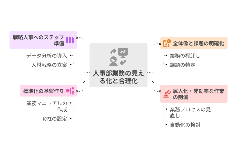 - 可視化:人事部の業務全体像を共有・説明できるようになる