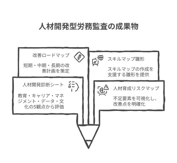 人材開発型 労務監査では、教育研修・OJT・キャリア支援・スキルマップ・学習文化といった観点から、“育成が属人化していないか”“制度が形骸化していないか” を徹底チェック。
