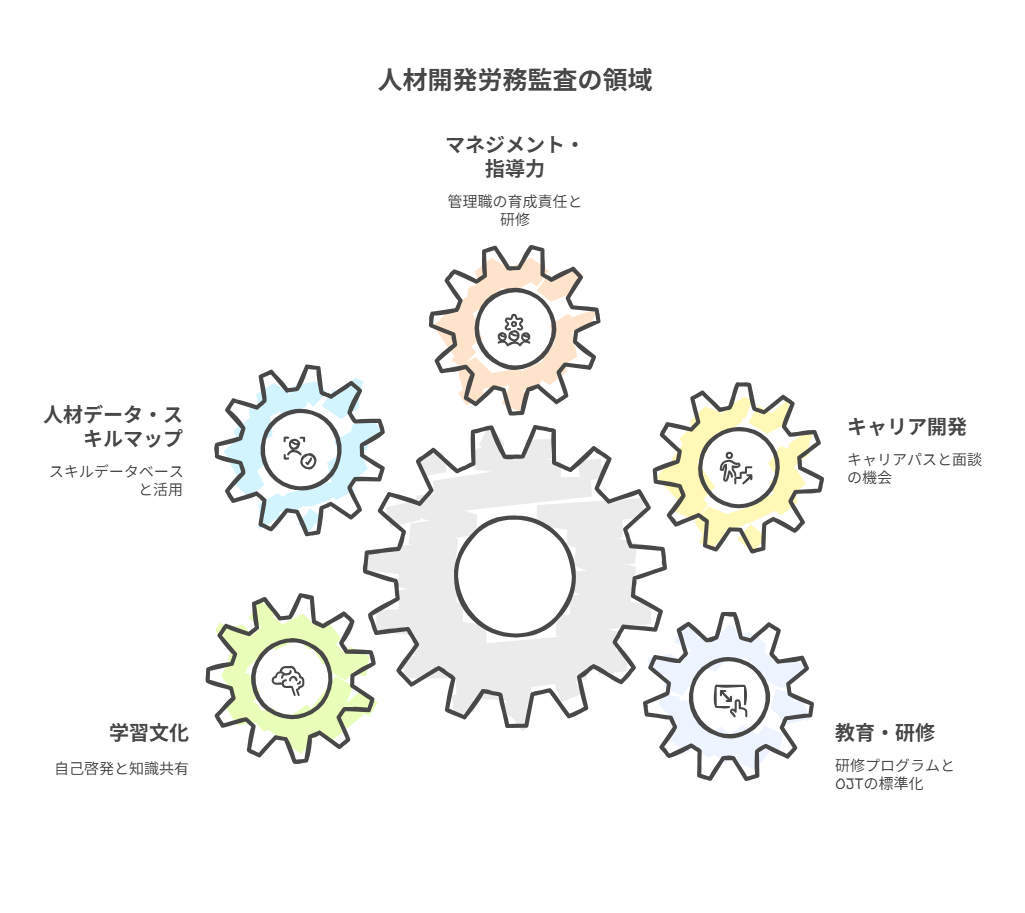 人材開発型労務監査の主な領域は次の5つです。