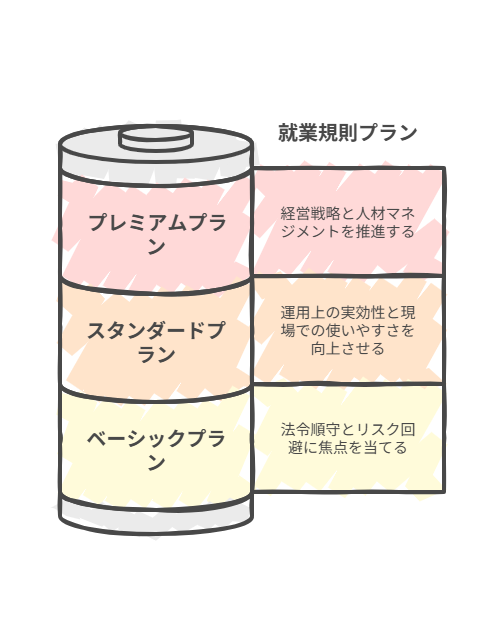 - 特徴:パーパス・理念と規則の一貫性、多様な働き方への対応、労務監査・経営層コンサルティング