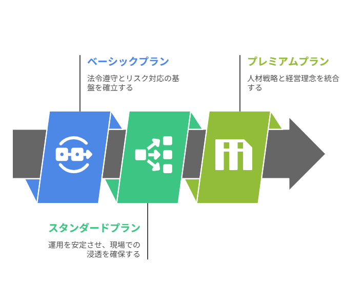 - ベーシックプランで法令遵守と安心を確保、