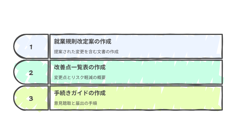 - 従業員代表への意見聴取手続きの流れもご案内